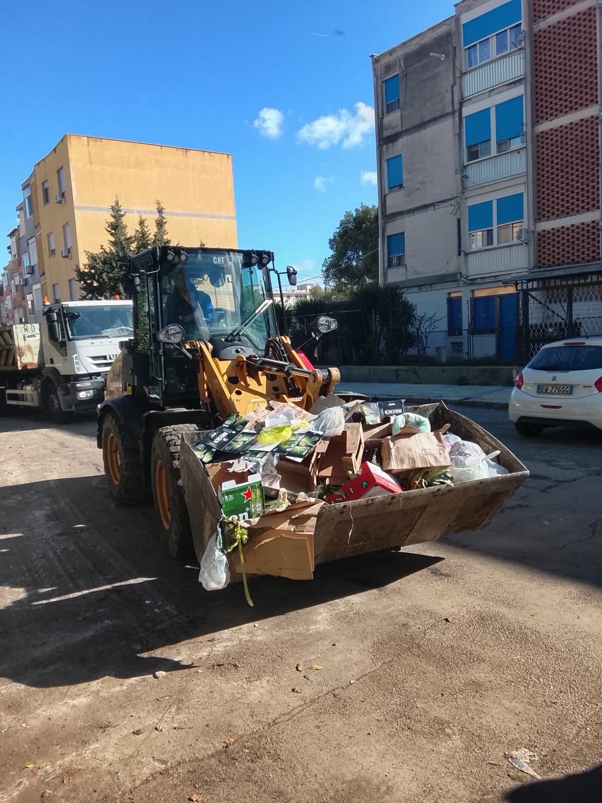 Ogni squadra è composta da una pala meccanica, due compattatori, un motolambro, tre autisti e due operai.